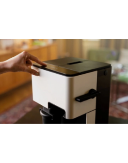 Avec moins de 5 Kg et des dimensions plus que raisonnables, 21x32x21 cm, le cube se manoeuvre en deux temps, d'abord le grammage, sa mouture et son intensité, puis dans un second temps, son extraction, avec modulation de sa température, de sa percolation et de sa puissance. Nous l'avons testé et le résultat est là, par simples pressions, nous obtenons 12g de saveurs en tasse. Rare nouveauté technique de 2024, n'ayant pas besoin d'une assistance artificielle pour exceller.